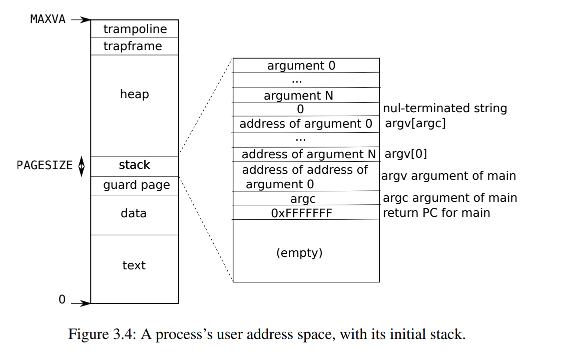 我们这里先不考虑这些复杂情况,做Lab的时候只需要知道进程地址空间是exec创建的,进程页表是proc_pagetable创建的